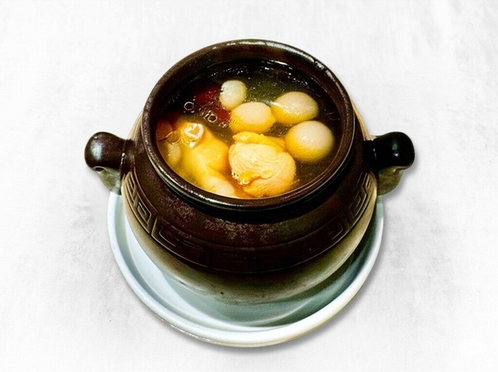 Double-Boiled Chicken Soup with Fish Maw, Chinese Yam, and Longan